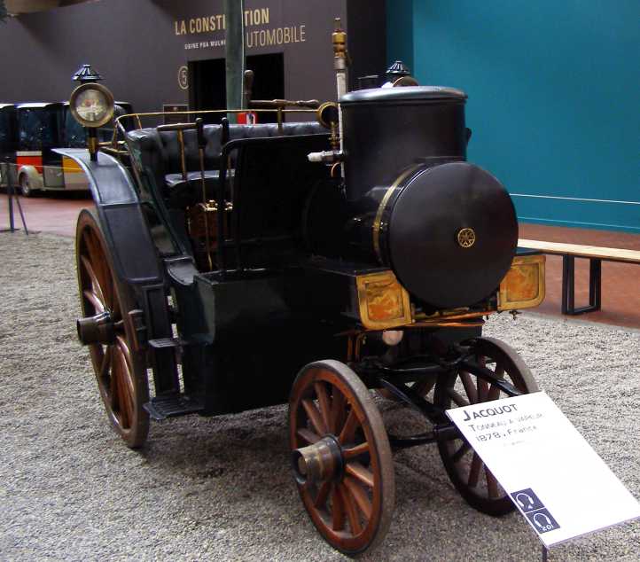 1878 Jacquot. Built by a blacksmith for a doctor, this marriage of carriage and steam power is the oldest display in the museum.