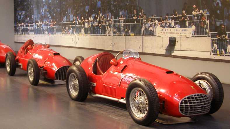 Ferraris. Ferrari came into being during the second World War and was ready to go racing after the war. V12 engines were Enzo Ferrari’s favourite and he oversaw the building of many of these, the 4.5-litre Lampredi version of which gave him his first Grand Prix victory with Alberto Ascari at the wheel. The first car here is one of that model.