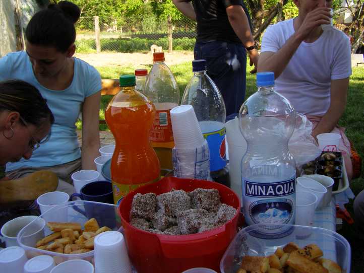 Snacks and drinks. The table became weighed down more as each family arrived, there was plenty for everyone, including the kids.