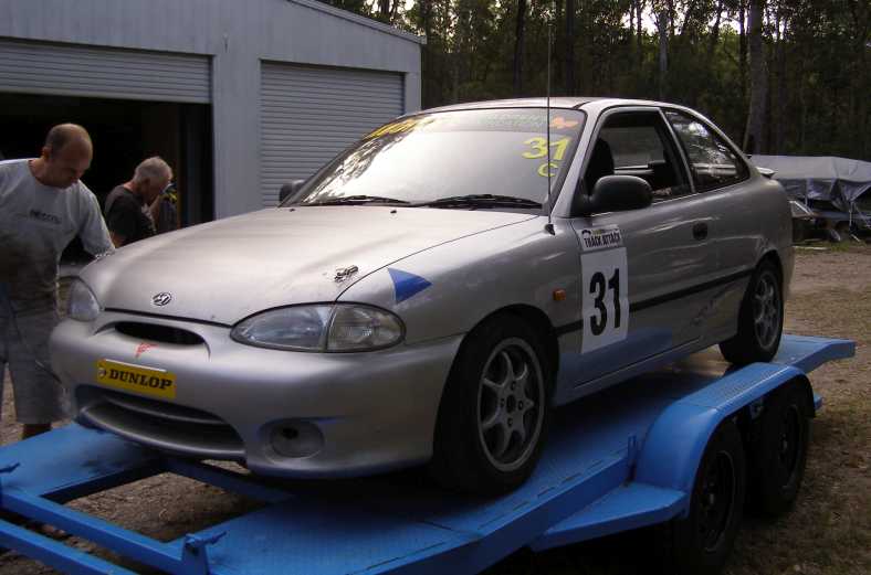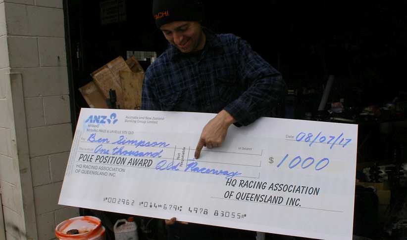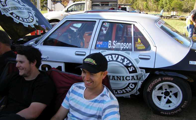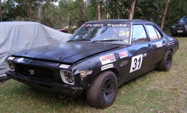 Ben and his HQ Holden. My nephew Ben relaxes near his HQ Holden race car. These cars are restricted to a single-choke carburettor on their 202ci engine and the standard 3-speed gearbox.