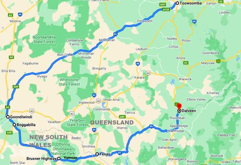 Toowoomba-Boggabilla-Dalveen. This map shows that I was going into or through areas where I’d been otherwise over the past few months, but basically I hadn’t used most of these roads at all in recent times.