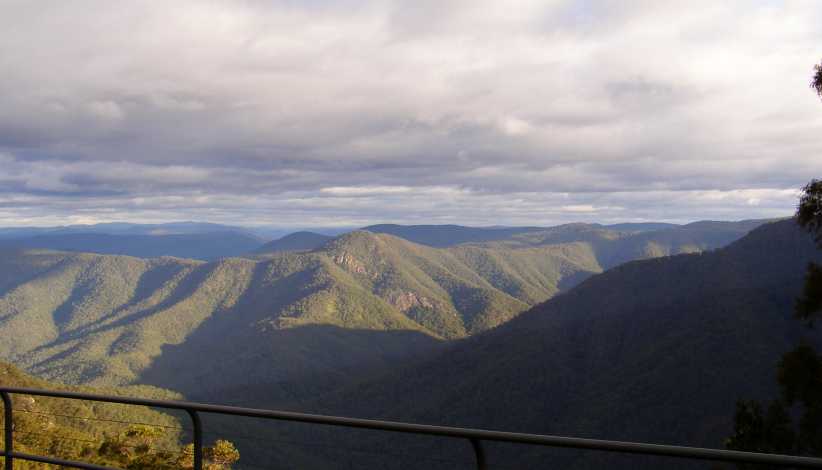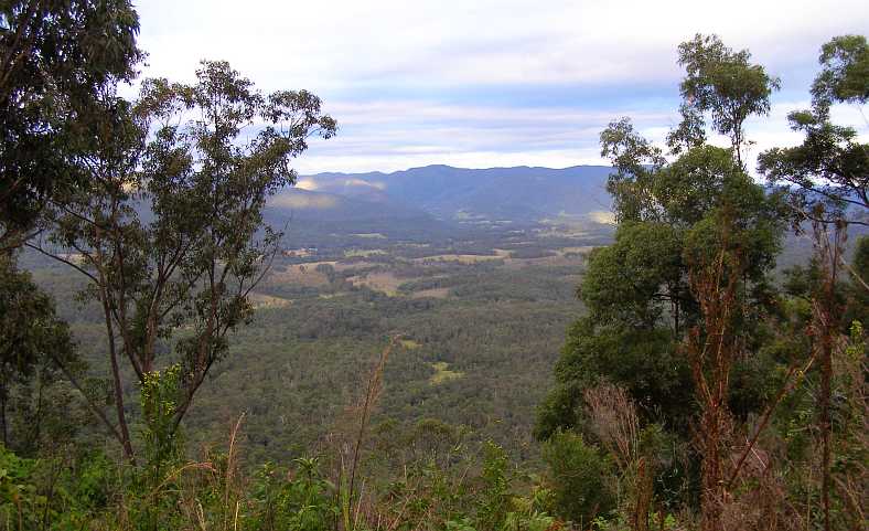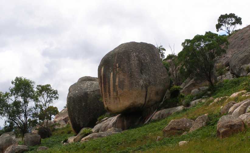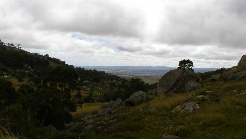 Looking past the boulders. Between the hills there’s a glimpse of some flatter country and more distant hills. This area sits at about 2,700 feet altitude and is a part of the Great Dividing Range.