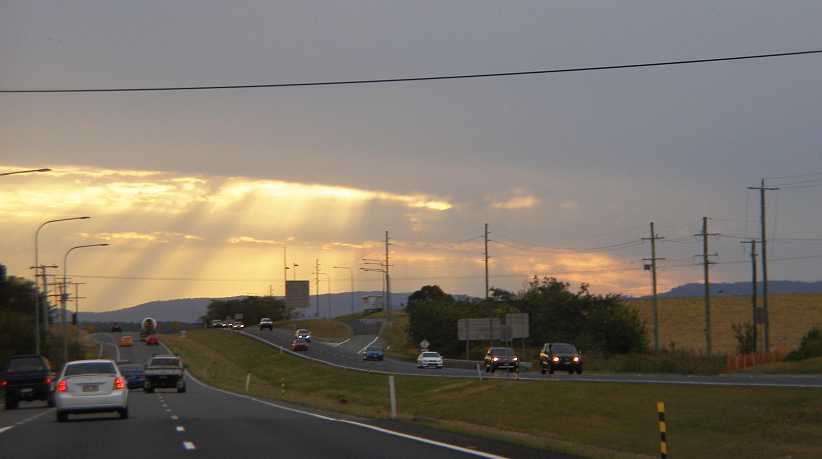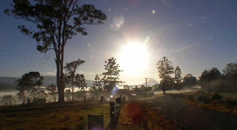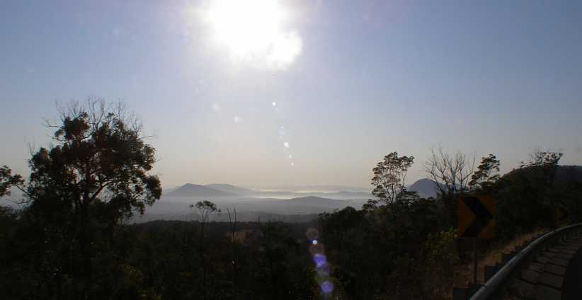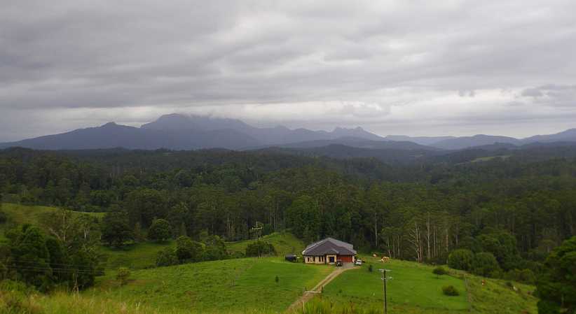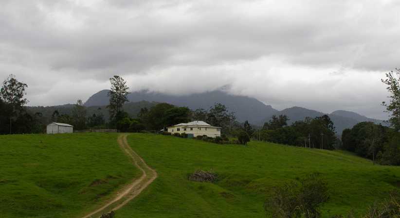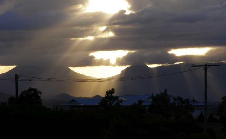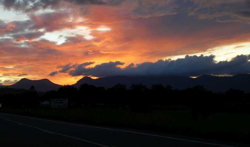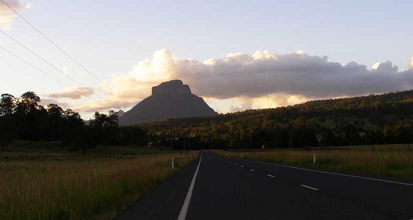I knew darkness would beat me so I didn’t stop long that day, heading off through Kyogle and seeing Mt Lindesay as the sunset lit up the clouds behind it…