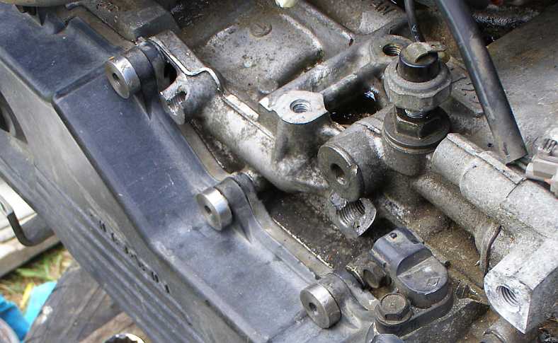 …which came up very nicely. But there was more. I had to find 8mm bolts the right length to go into the holes in which I’d cleaned the thread the whole way. Additionally, I needed bolts which were the same diameter for their whole length, something very few Japanese bolts are. Peugeot start motor bolts did the trick, they’re the ones marked blue here: