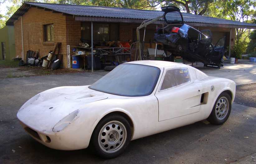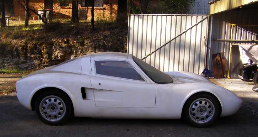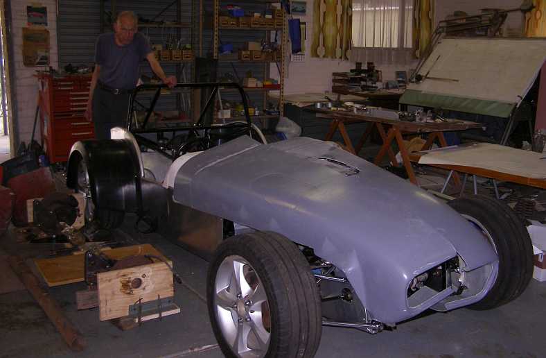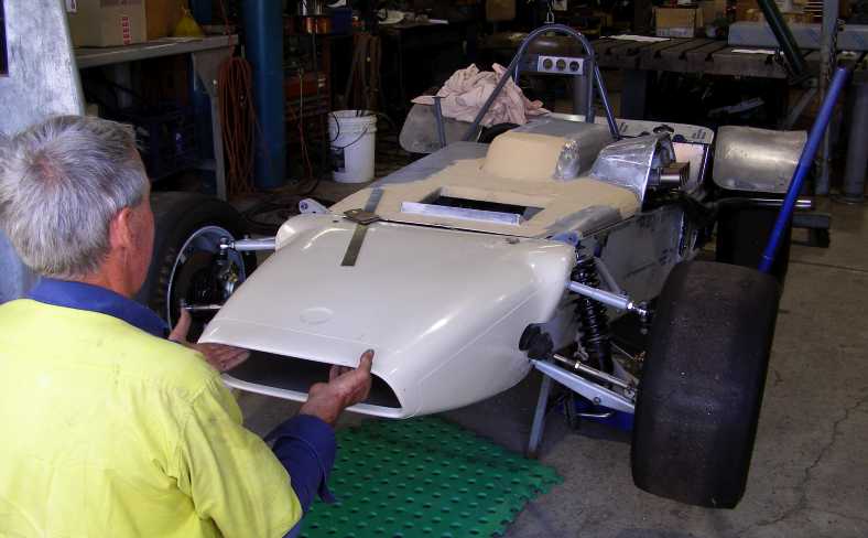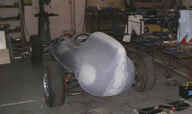 Fibreglass tail. By this time Les Puklowski had transformed the shape into fibreglass panels for the BMW-powered car.