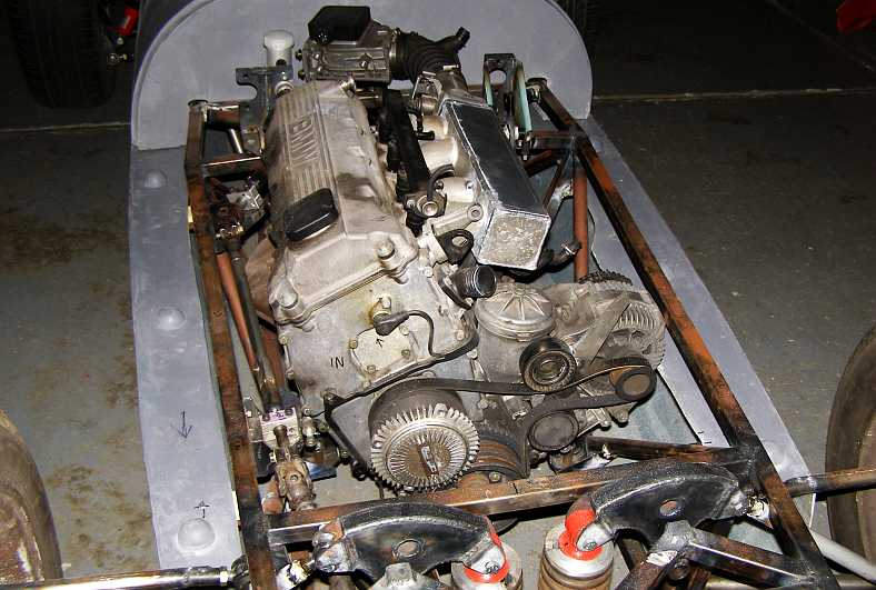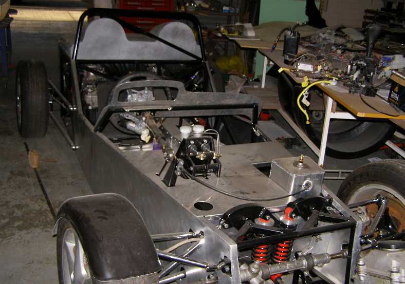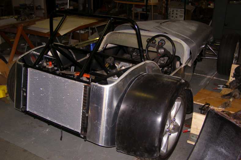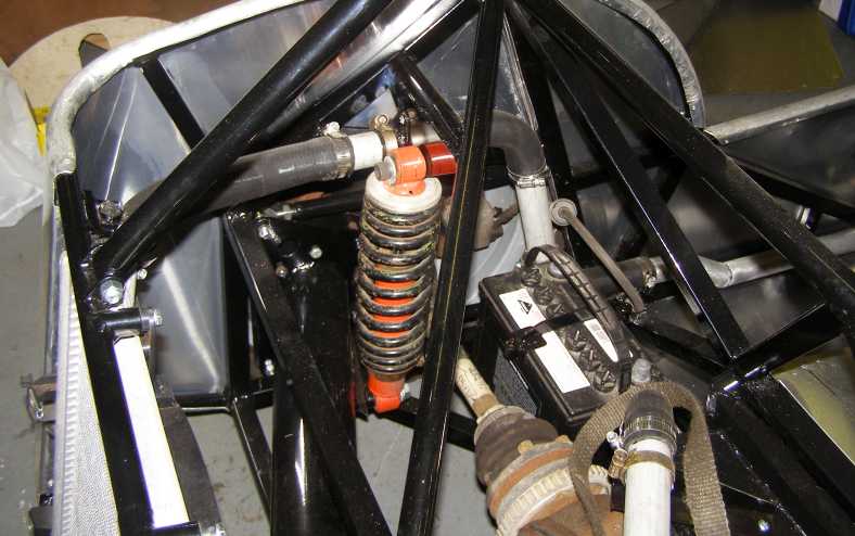 Fitted in. The neat way Bob has designed things to fit within his sleek bodywork is evident here. The chassis still has to be sandblasted and painted, of course.
