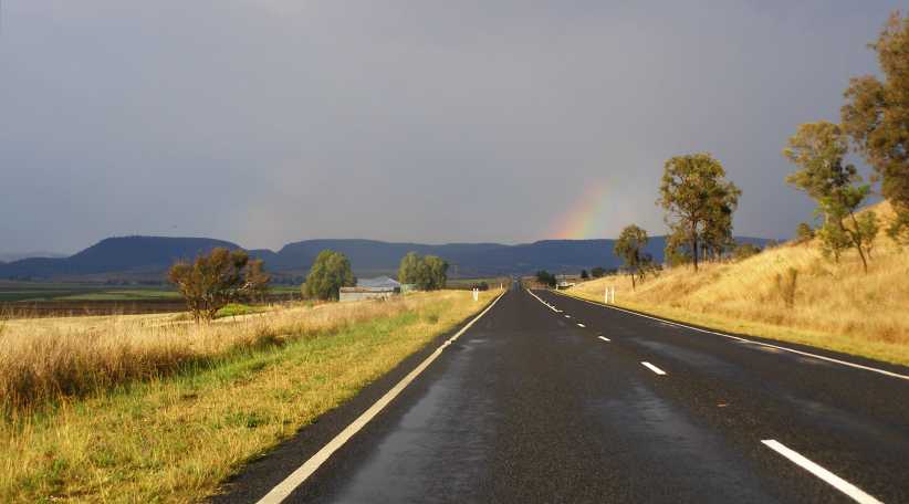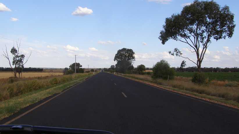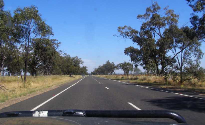 Road to Narrabri. The final stretches of the drive to Narrabri are flat and straight, and the lack of traffic makes for easy travelling.