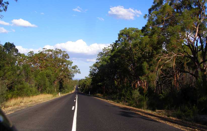 Leaving the highway we slipped onto the Putty Road. This is a unique stretch of road, starting only forty or so miles from Sydney, it runs through almost uninhabited country for a hundred miles. Sandstone country with scrub and bush everywhere and little profit in attempting to use it for agriculture.
