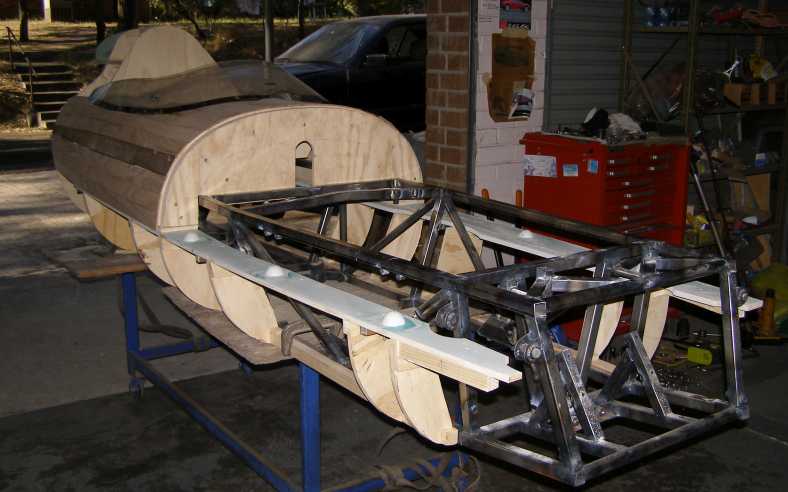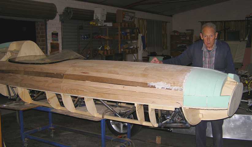 I made a final visit to Bob before I left Sydney, he was busily working on creating the shapes necessary to enclose that V6 in the fibreglass body: