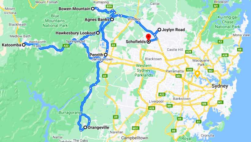 My assignments. Well, not Orangeville, that was to visit a friend, but I had four areas to cover in the Windsor district, including Agnes Banks and Bowen Mountain, and a further three areas to do up the Blue Mountains as far as Katoomba. The company put me into accommodation at Penrith and on the weekend in the middle of my two weeks there I did a regular assignment in Schofields.