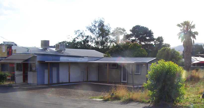 Moonbi memory. The house we lived in is gone, burned down a year or so before. The Post Office was in the structure to the left with the flat roof while the other part is new. The Post Office function has moved to the adjacent shop, the red sign just visible to the left of the window under the awning.