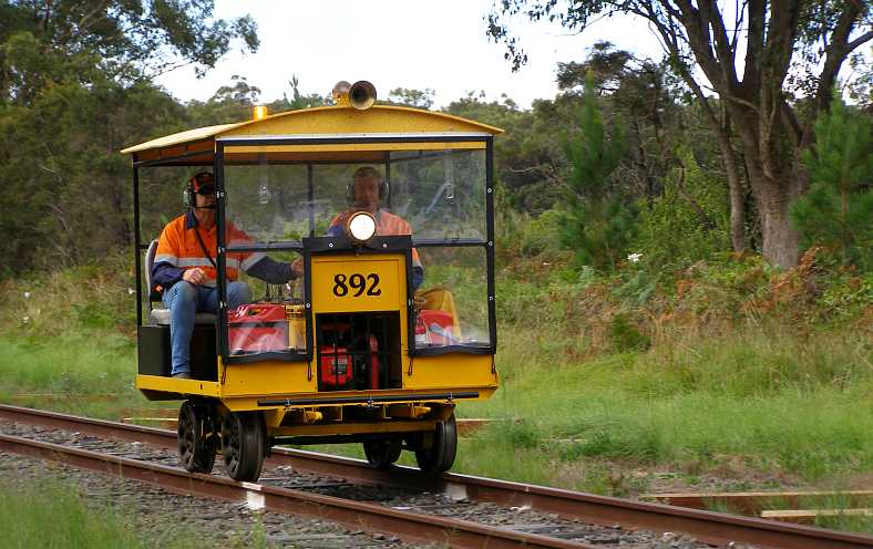 Rail workers arrive. These workers travelled through in these personnel-carrying devices, but they had some heavy lifting gear accompanying them as they were going to replace all the aging sleepers.