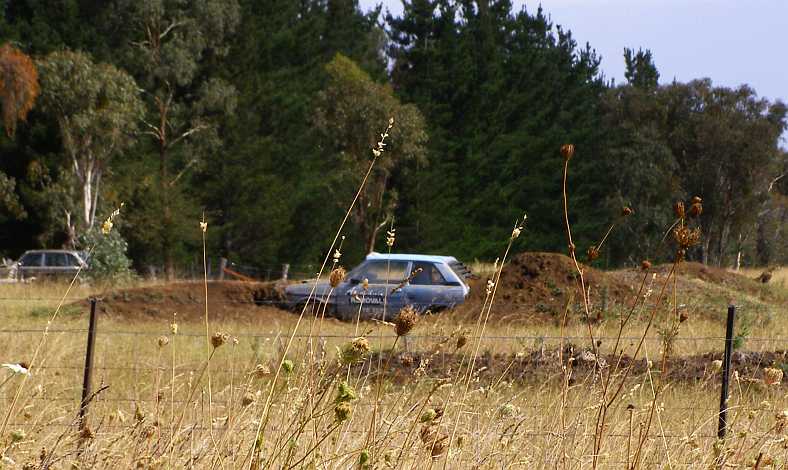 Another place just up the road had different ideas about what to do with their plot of ground, forming a motorcycle course with jumps and other motocross-style challenges. But they’d added a bit of their own flavour to it with the infusion of cars like this…