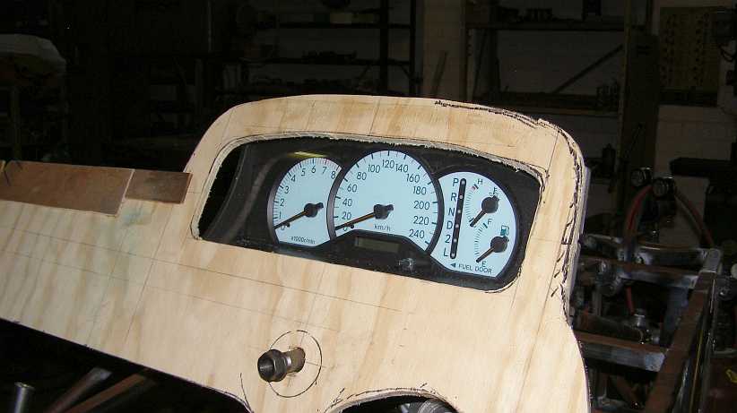 Corolla dash. No longer roughly fitted in with plywood, the dash of this car was starting to look neater.