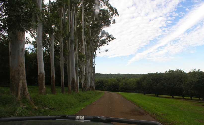 …where the farm’s driveway is heavily covered in a different soil to the one in which the crop grows. That grey soil turns to black when it’s wet and is the perfect trap for the unwary, cars and trucks bog to the axles very quickly.