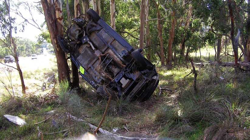 Crash and burn. I guess the driver of this Falcon one-tonner survived as I’d heard or read nothing of this crash on the back road to Warwick.