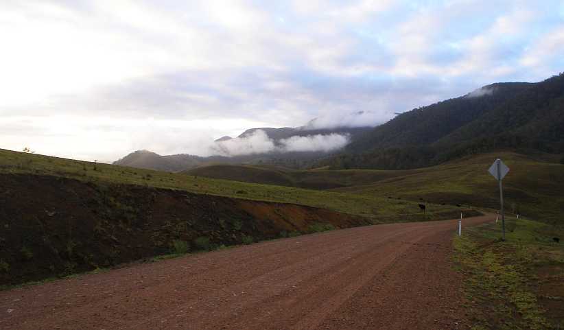 Lonely road. Only a few remote farms are found along this road as it descends from the higher country to the lower coastal area.