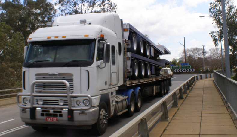 Northbound. This load looks like new B-double type trailers heading North for use. Most Australian manufacture of this kind of thing is done in Melbourne.