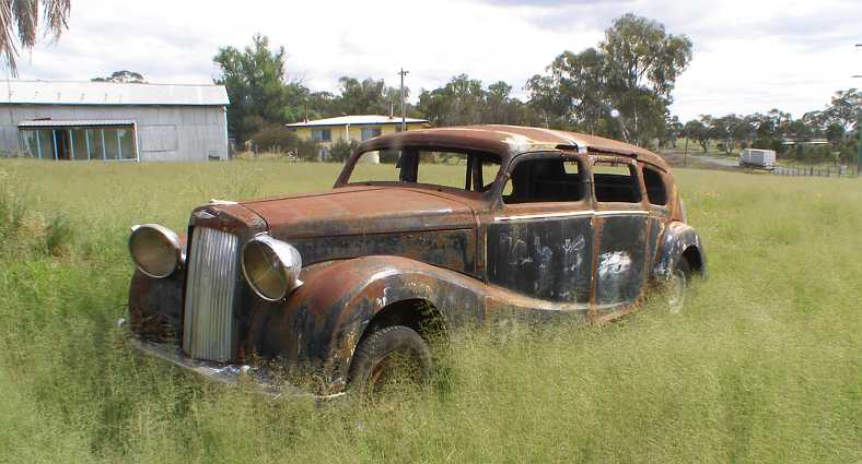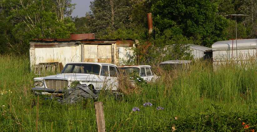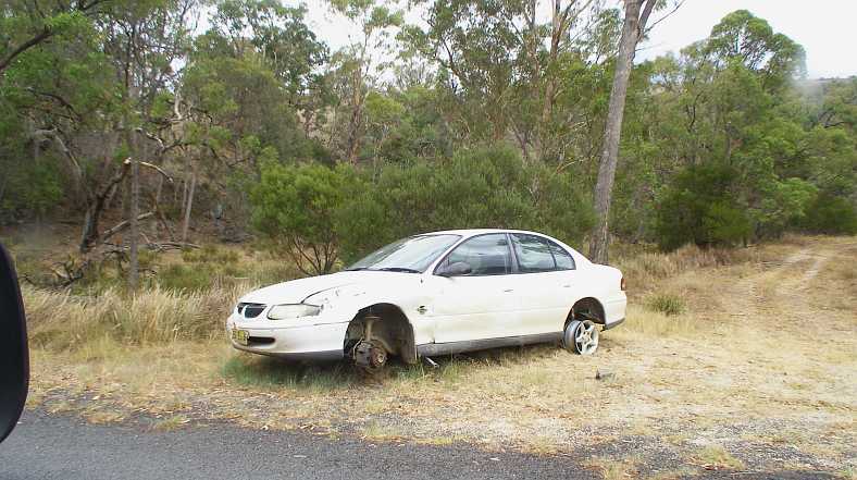 Dumped Holden. With a flimsy jack supporting one side of the car, this Holden was no longer of much value, apparently.