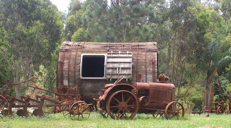 Tanning vat. Plowing in the early Twentieth Century involved mechanised equipment now long superseded. And the big drum? A tanning vat, something very different to see.
