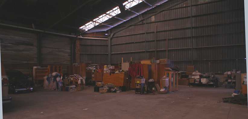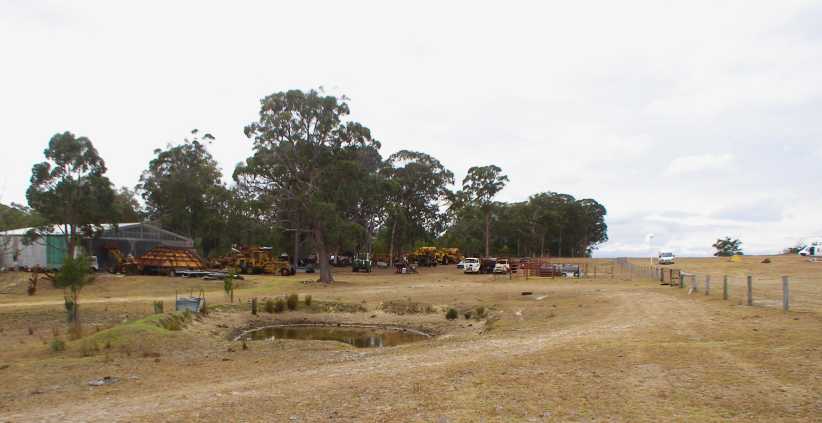Shed and machinery. The helicopters were based near a huge machinery shed, the low level of the dam in the foreground again indicates the level of drought.