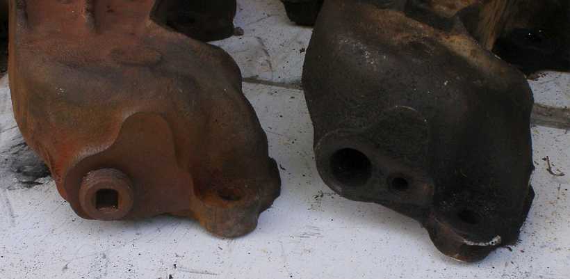 More Lotus Cortina. The A-bracket is to the right, while the lower control arms are joined in this selection by the handbrake lever and the bracket which supports the driveshaft centre-bearing.