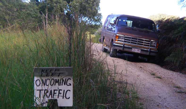 …John says that the car in question came from some 19kms west of Bellbrook, but I have to report that from the first Bellbrook sign to the village itself was probably the best part of 19kms. And in that distance yet more of the hand-carved narrow road etched itself into the hillsides, some parts of it graced with a different sign, "VERY narrow road". Many times drivers were warned not to stop because of the risk of falling rocks, occasionally with the addition of a 'Proceed with caution.'