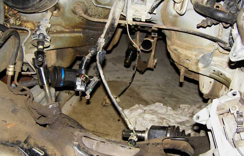 …and those crossmembers replaced under it as the gearbox ‘cradle’ on the floor jack holds it in place. Of course, the driveshafts were all guided into their place as I juggled it in. I’d also had to fiddle to get the electronic speedometer drive right along the way as the original had managed to get broken.