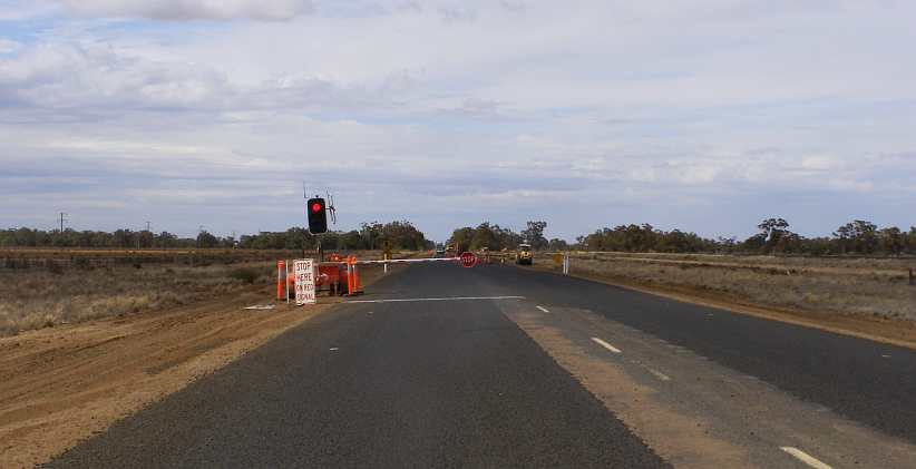 Road to Nyngan. Traffic lights for the roadworks, a regular feature in places like this mid-week.