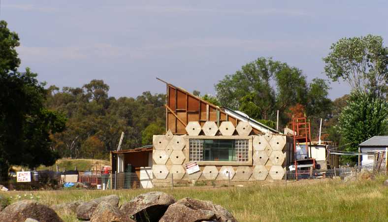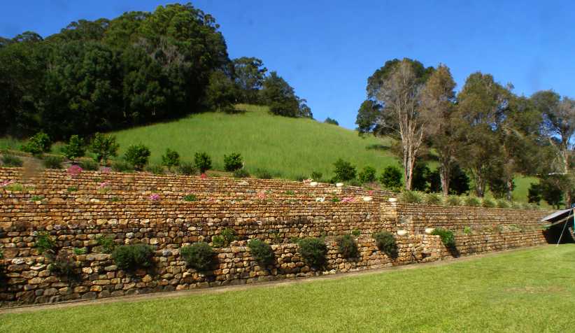 Another type of character altogether was the couple who’ve gone to extremes to build this rock wall behind their lovely home. Unfortunately my pics of the nice gardens suffered from the sun lighting up the dust on my lens so were unusable…