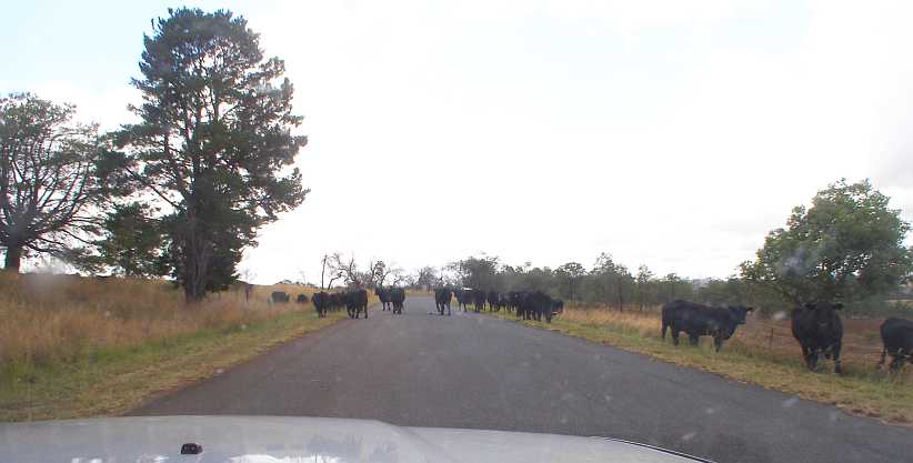 The’Long Paddock’. Cattle on the road, farmers making the most of grass often much longer and much greener than is on their properties.