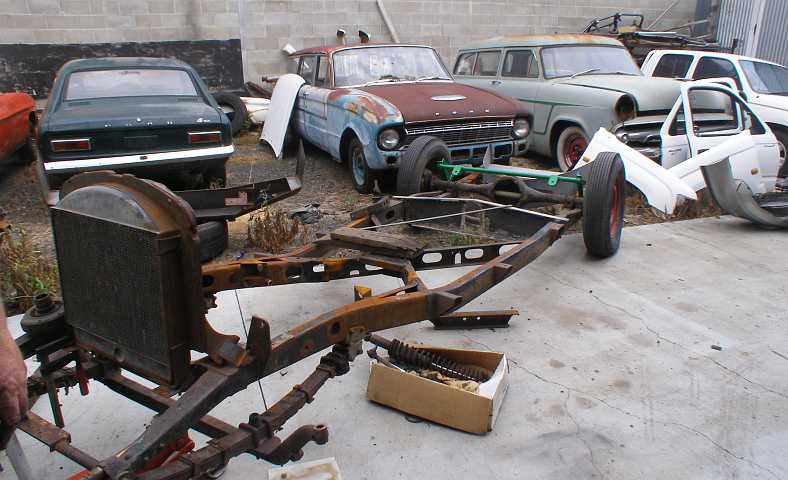 The following day I propped up the chassis pieces at my storage shed and photographed what I’d claimed for myself. Conversations with Ross Seymour led to him saying he’d be going out there and getting the tail shaft he’d repaired when he was a kid.
