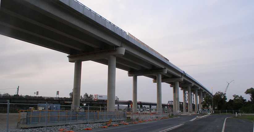 Bridge progress. The bridge was now taking shape with two spans almost completed. The final pylon was also progressing well (out of frame)