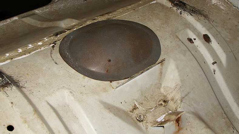 The tin hat. This addition to the boot floor gives clearance for new brackets on top of the rear axle housing for the A-bracket mount.