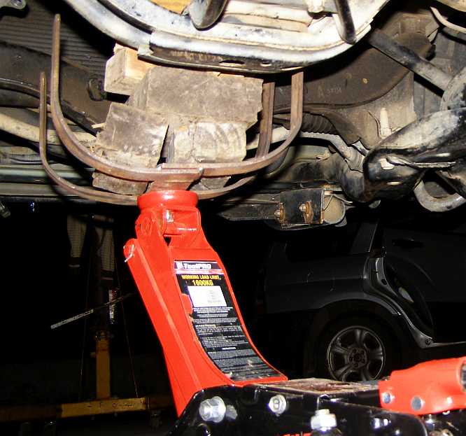 Box lined up. The jack and cradle support the box, the crossmembers are being bolted up after all the driveshafts were threaded into their appropriate places and the gearshift linkages were bolted up.