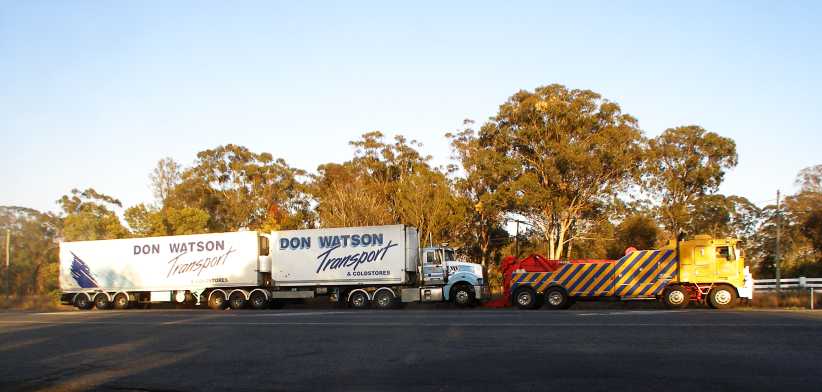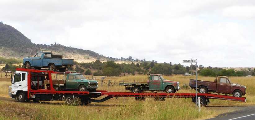 The first stretch, of course, was from Toowoomba to my shed at The Summit, where there was always something to be dropped off or picked up. As I climbed the Braeside hill, about 15 miles before The Summit, I snapped this pic of a car carrier: