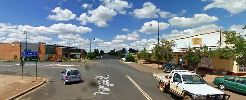 …while I had plenty of ‘thinking time’ as I drove. I didn’t use it to take photos, however, which explains why there are so many Google Earth Street View pics in this post. Caroona, Spring Ridge and Colly Blue are very small places, Premer’s township is actually off the road, Coolah was the next town of substance and I got something to eat there. But without wasting time.