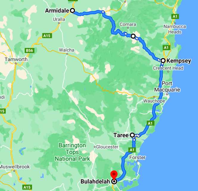 And I still would like to make the drive at a leisurely pace in daylight. Much of it follows the Macleay River, one of the New South Wales North Coast rivers which flood regularly.