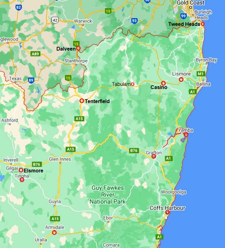 That taken care of I had to look at the options of where I had to go. Remembering that I had to do a few in each area to satisfy the clients, it was really a matter of working out how to efficiently get to each area. It was now Tuesday morning and I was due back in the Tamworth area to do my regular work there on Saturday.