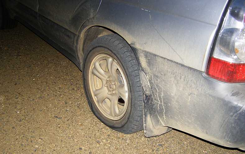 Flat tyre. A sharp edge on a bridge approach with some subsidence caught this tyre out, it took a little while to change.