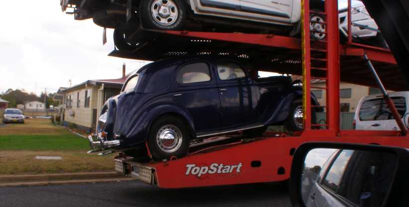 The car in question, almost looking like it’s ready to fall off the back, was a Ford Pilot. This was a model produced by Ford in England during the early post-war years, largely styled on the ‘36 US Ford but smoothed out a bit and with a different grille up front. They were V8-powered and a fairly classy car in their day on Australian roads.