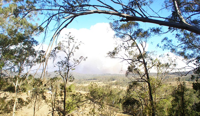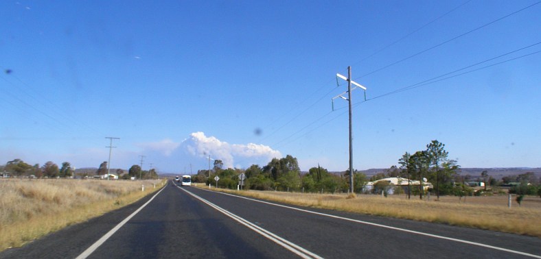 Smoke from home. The afternoon sun shows up smoke haze to the West of Toowoomba, fires continued to spring up everywhere.