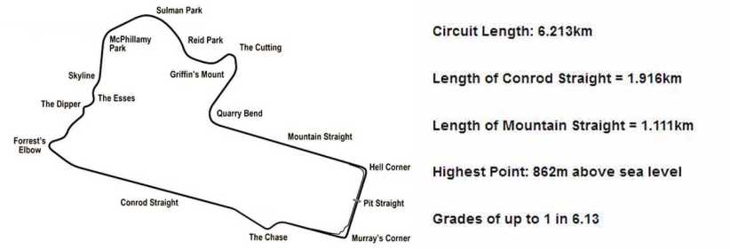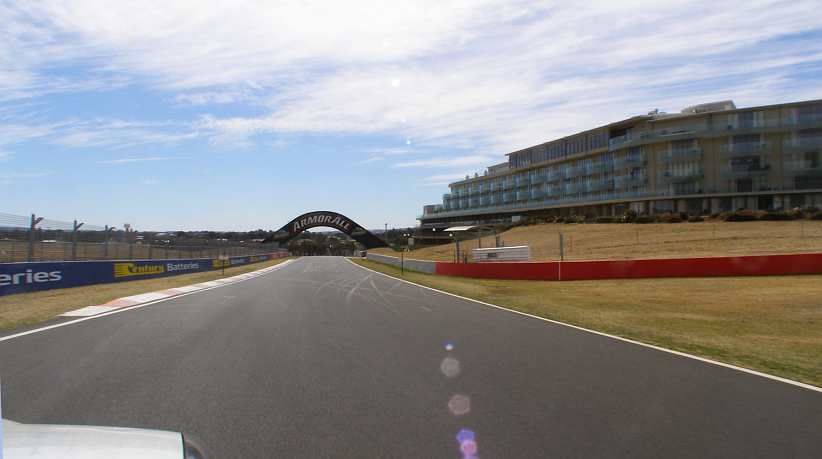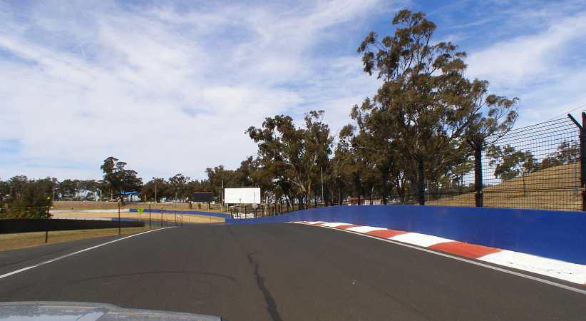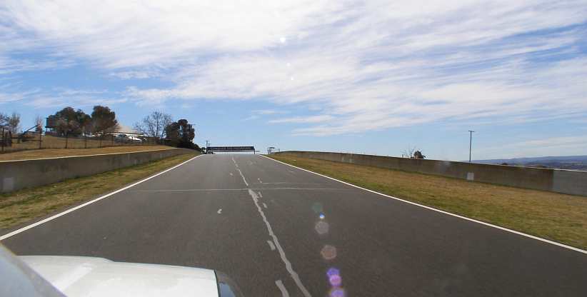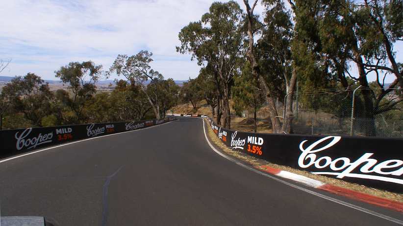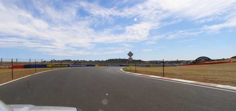 Top of Conrod Straight. It’s all acceleration now to the car’s top speed, the bend ahead presents no difficulty and then the downhill rush helps get the speed right up.