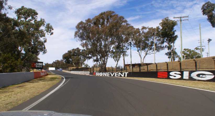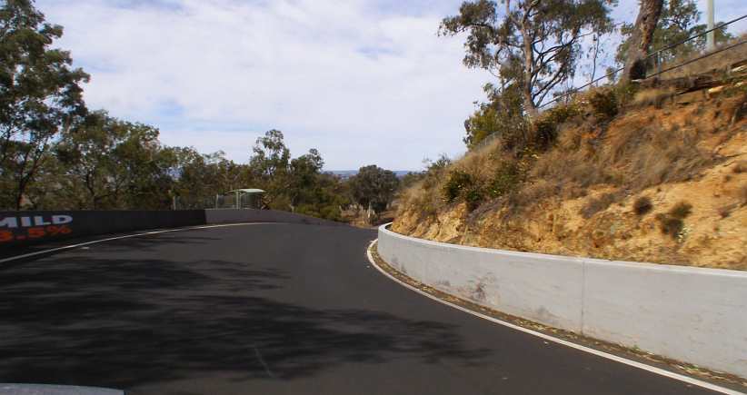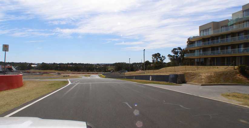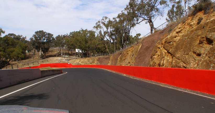 Still the changes show up. There’s a pit entry lane going off to the left just before Murrays and no sign of the trees which used to line the circuit on the right at this point. There’s a road goes off to Bathurst at an angle, that’s an escape road for those who find they’re going too fast.