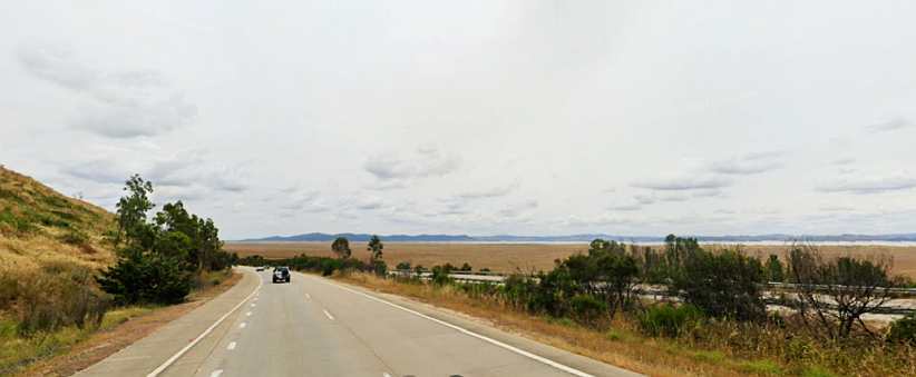 Blocked. There’s an accident just over the crest and all traffic was being stopped for a short time.