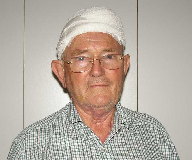 And my squamous cell carcinoma continued to bug me, but my waiting time for the little operation to take care of it came and my head finished up wrapped in a bandage:
