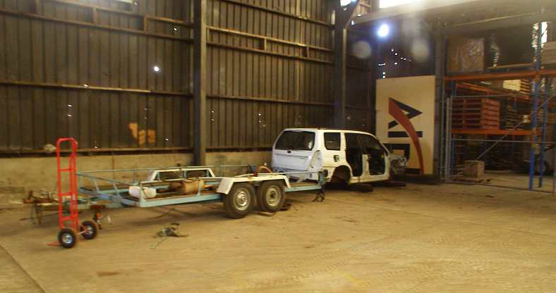 The first thing which had to be moved was the white Forester body. It was sitting on the car trailer beside the smaller shed and I needed that car trailer to move everything.