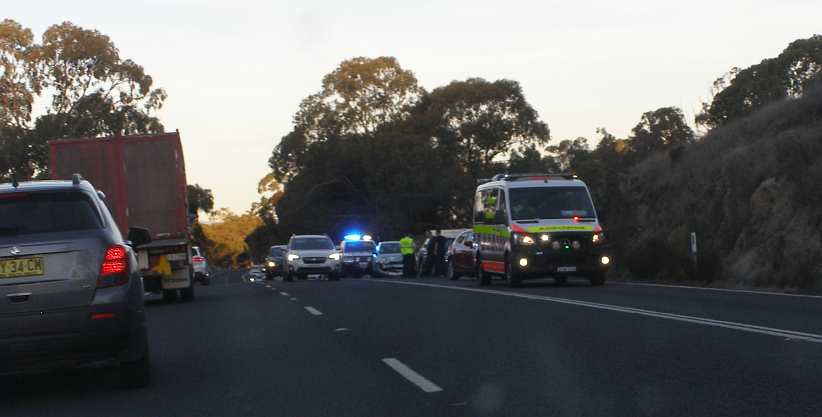 Past the wreckage. I rather think there was a motorcycle involved here, but it was the usual cast of thousands to see to the aftermath.