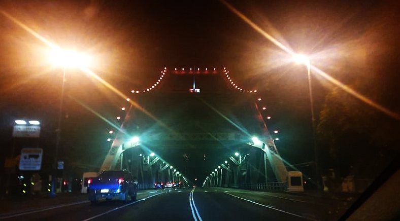The old and the new. The first few times I crossed the water here it was on a cable-tethered ferry. The bridge with opening span came in 1966 and now it’s consigned to history.