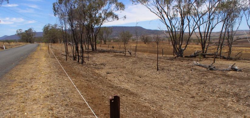 Droughts and fences. When times are tough farmers use the roadsides as extra grazing land, as I’ve mentioned before. In this shot it’s become very professional as an electric fence is there to keep the stock in.